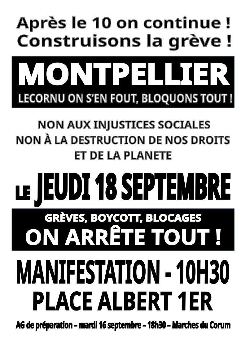 Assemblée générale au Corum mardi 23 septembre à 18h30 pour organiser la suite du mouvement !
